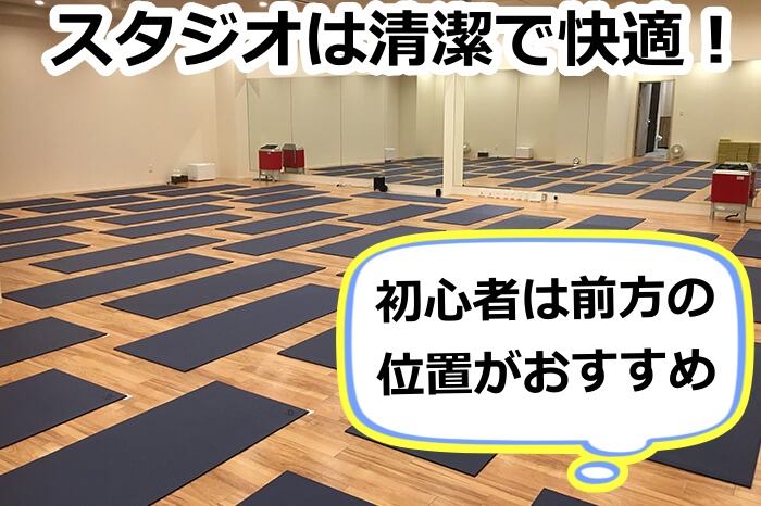 スタジオ内はシンプルで落ち着いた雰囲気。床に汗や髪の毛なども見当たらず、快適に利用できました。